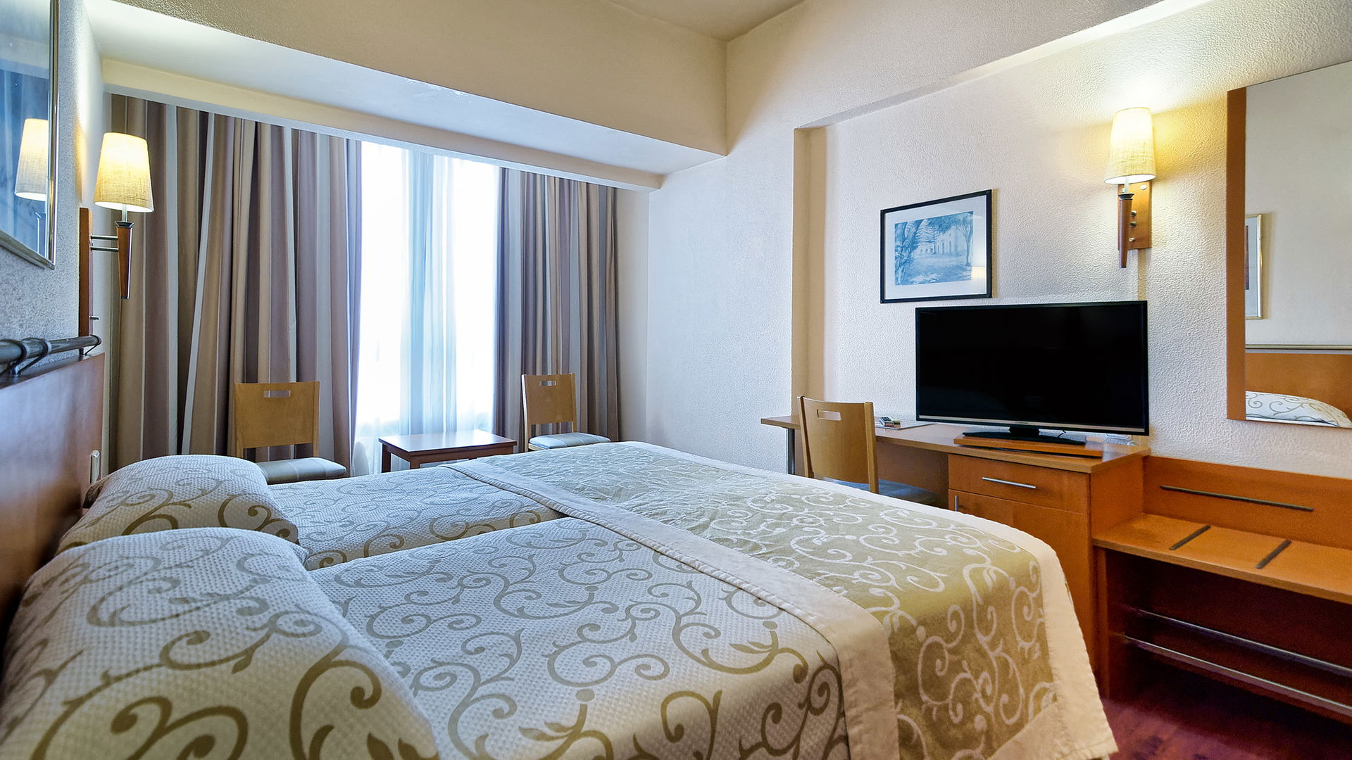 Lit simple d' 1,30 cm, vue intérieure, location de coffre-fort, téléphone, TV par satellite avec écran plat, air conditionné, bain, accessoires de bain, sèche-cheveux et internet gratuit.