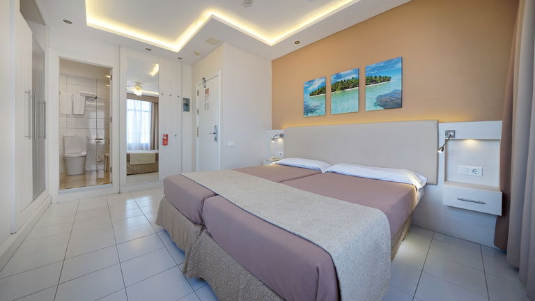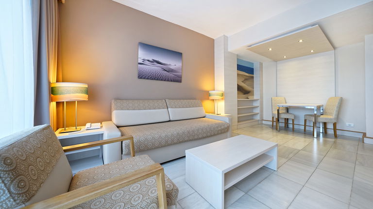 Finns 2 sängar, badrum, vardagsrum och balkong med utsikt mot hotellets trädgård. Utöver det finns hårtorkare, sminkspegel och kasskåp (mot avgift). Rummen är utrustade med en plasma TV med satellitkanaler, musikanläggning och ett litet kylskåp.